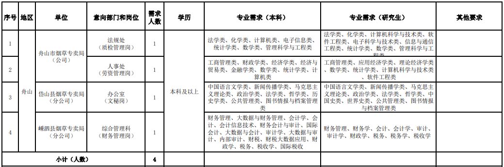 - 浙江省煙草專賣(mài)局(公司)招聘公告